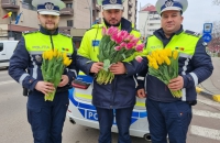 Cu ocazia zilei de 1 Martie, polițiștii din cadrul Serviciului Rutier, împreună cu reprezentanții Registrului Auto Român au oferit doamnelor și domnișoarelor întâlnite în trafic mărțișoare.