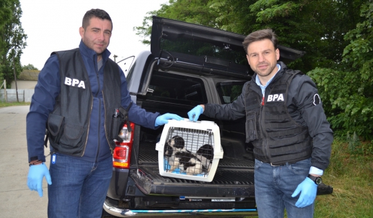 Aceștia erau dezorientați, murdari și uzi, adăpostiți sub mai multe obiecte aruncate lângă ghenă. Polițiștii au luat cățeii, i-au hrănit și i-au dus la un cabinet veterinar, unde le-au fost acordate îngrijiri medicale. Ulterior, aceștia au fost preluați de reprezentanții Asociației ”We care about strays” și sunt în așteptarea unor stăpâni responsabili, iar polițiștii efectuează verificări pentru identificarea celor care i-au abandonat.