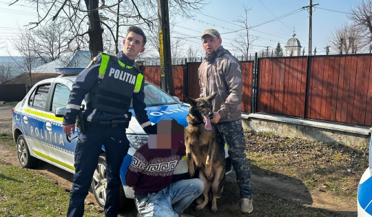 Câinele polițist și polițiștii de la transporturi au reușit să prindă, în timp record, doi tineri, care au tâlhărit un bătrân