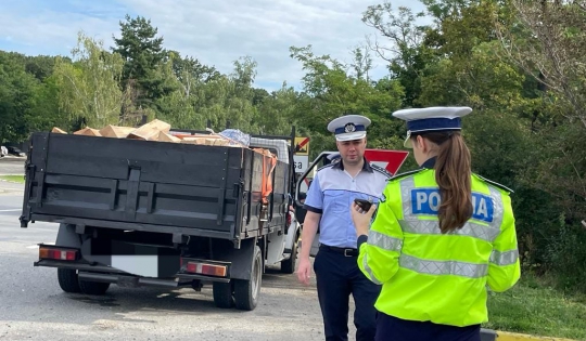 oprit pentru control, pe Drumul Național D.N. 24 C, în comuna Manoleasa, o autoutilitară condusă de un bărbat, de 54 de ani, din comuna Trușești, care transporta material lemnos.